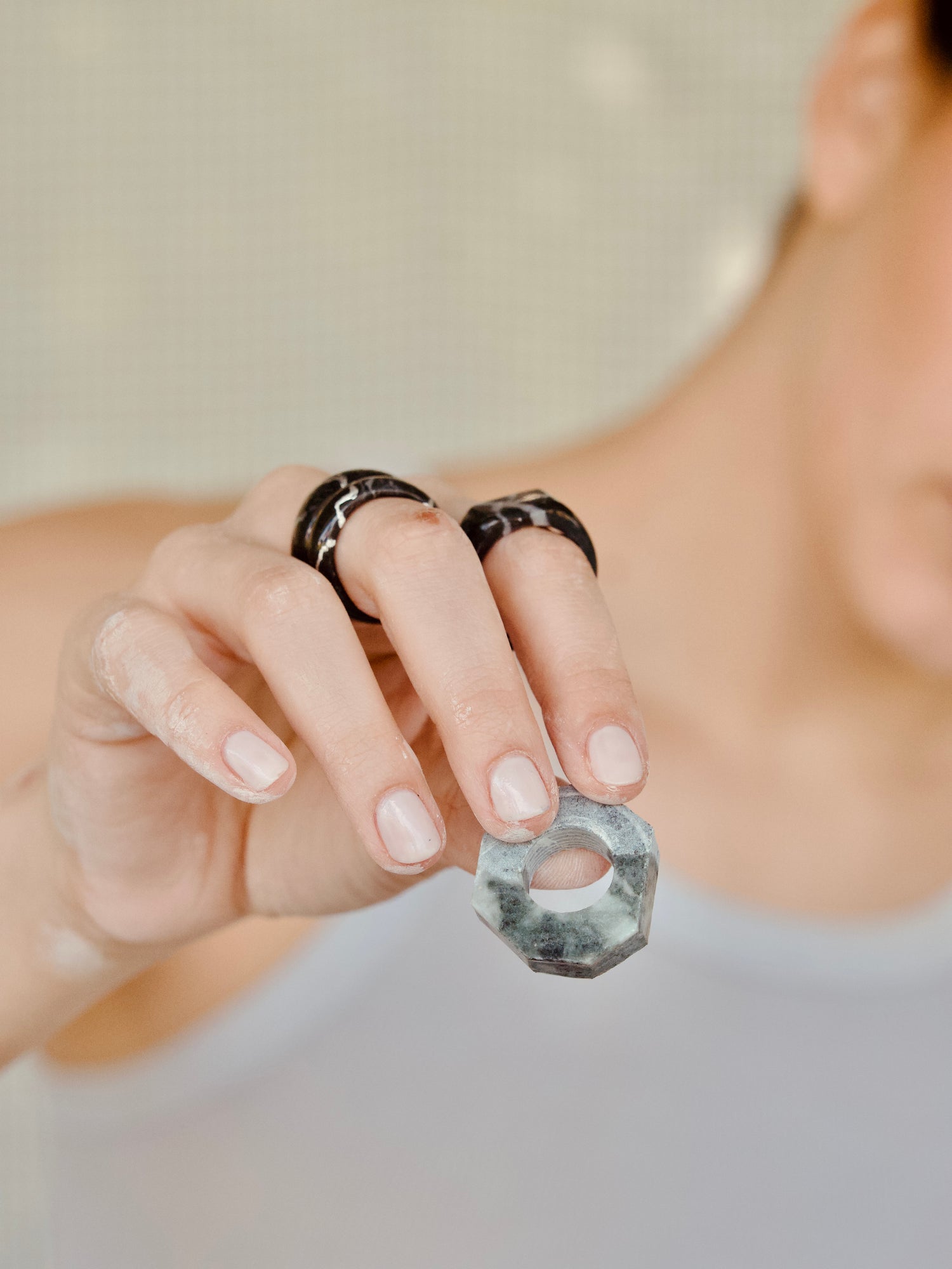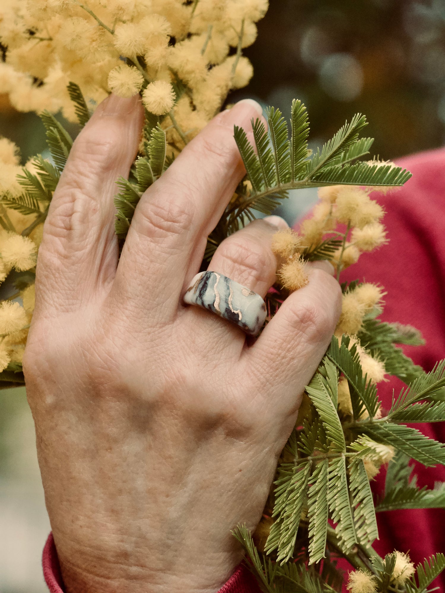 Ogni nostro anello è realizzato a mano utilizzando marmo di scarto, scelto con cura per le sue venature irripetibili. È la bellezza nascosta che torna a splendere, trasformata da mani sapienti in gioielli unici. Nessun anello è uguale all’altro, come nessuna storia lo è. Scegliere uno dei nostri pezzi significa celebrare l’arte senza tempo e contribuire a proteggere la natura che ce li dona.